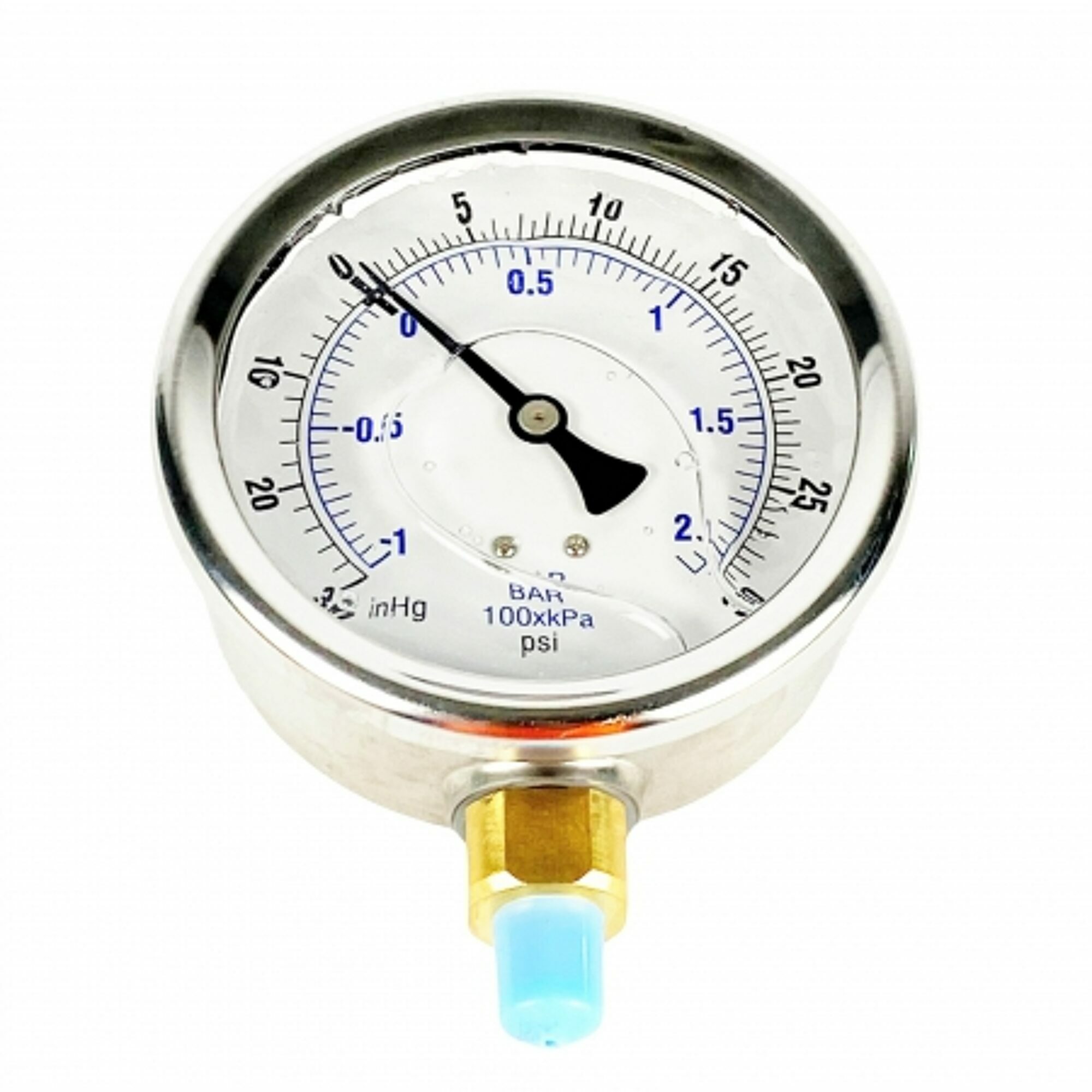 GAUGE 4" LIQUID FILLED BOTTOM MOUNT, -30/+30 PSI, 1/4 NPT